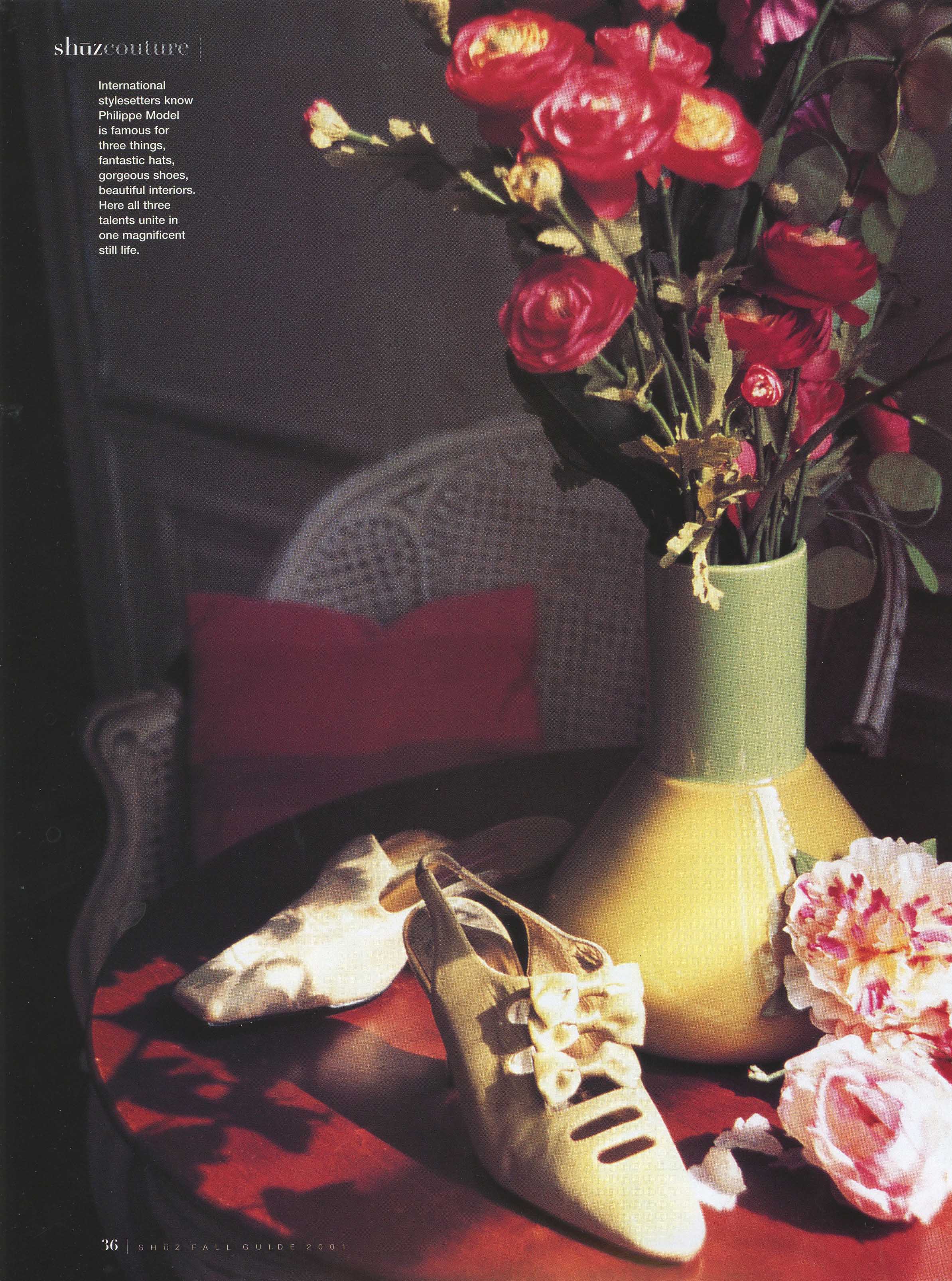 And then there’s this pretty, romantic page that accompanied a profile of Philippe Model, footwear and hat designer: